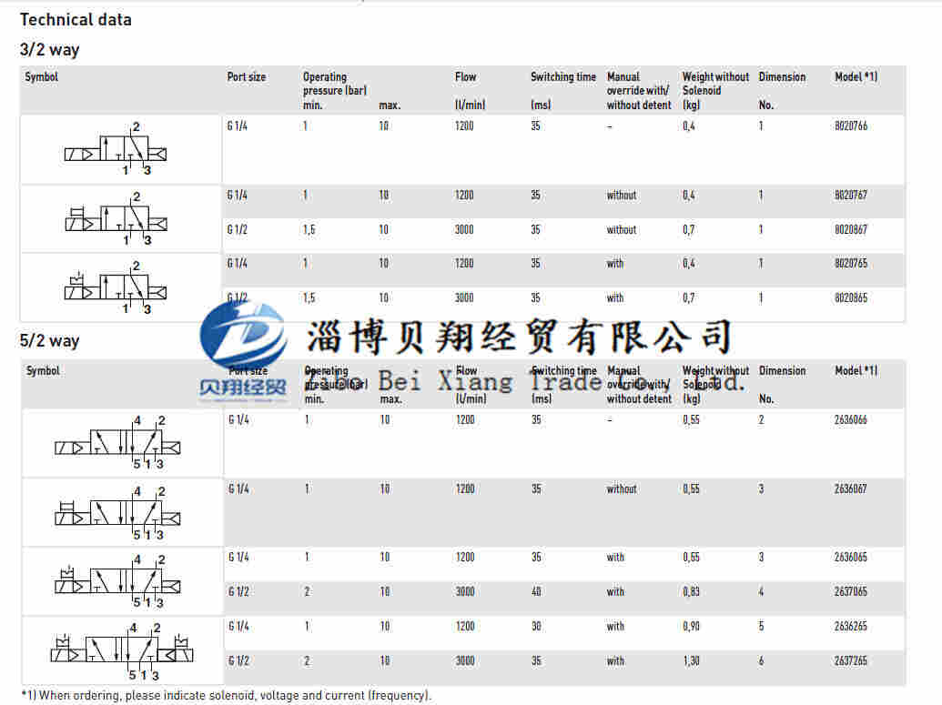 3/2, 5/2, 5/3, NC/APB, G1/4, 1/4 NPT, G1/2, 1/2NPT