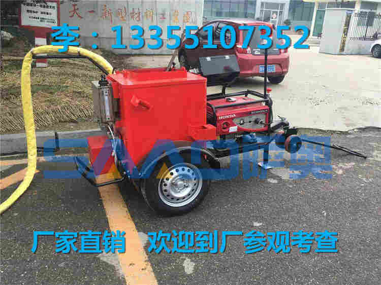 沥青灌缝车!我们这一款厂家直销的沥青灌缝车能测温,自动调节温度,而且我们的沥青罐是大型沥青罐能容:100L沥青,符合人体工学设计,这个每分钟出沥青是1L,上面有压力泵在里面沥青罐表面还有一层保温岩棉可以确保你在施工过程中不会被高温的沥青所烫到,,这个沥青灌缝车是由柴油燃烧机加热沥青桶、沥青桶里面的导热油和本田的电机组成的,操作方法是用柴油燃烧加热里面的导热油,导热油温度一高就会加热里面的沥青,从而使沥青加热,然后用出沥青的管子对准裂缝因为这一款是自动填充沥青的所以人只要在前面拉着沥青罐就行了,用完之后不用怕里面的沥青会凝结结块啦到时候在用的时候一加热不久又会融化啦而且咱们厂家全部产品质保一年 产品终身维修 全部厂家直销 全部质量保证 全部免费保养的沥青灌缝车拖挂式、独立动力,轻巧实用可靠沥青灌缝车机械式组合螺杆挤压发热装置,料温稳定