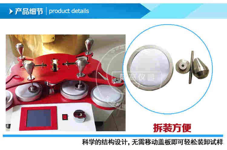 该仪器适用于针织物、毛纺织物、人造革、合成革等在压力下