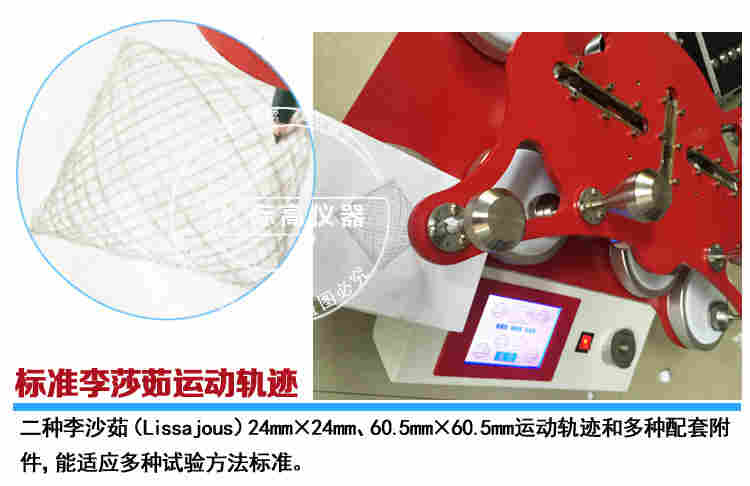 圆形织物试样在一定的压力下,与标准磨料按李莎如(Lissajous)曲线的运动轨迹进行互相磨擦,导致试样破损,以试样破损的耐磨次数表示织物的耐磨性能。