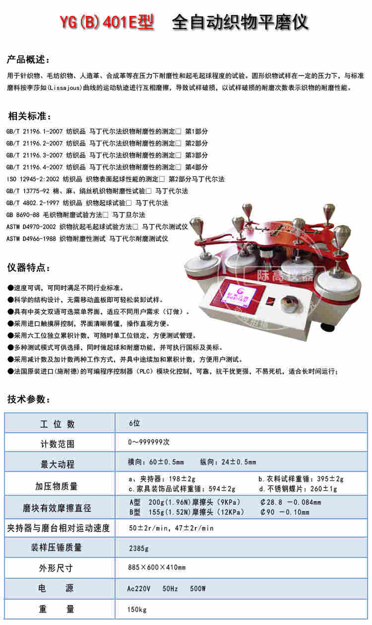 YG(B)401E型马丁代尔耐磨仪(9工位)温州际高检测仪器有限公司研发,热线:.