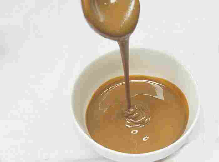 第四步将乳化好的芝麻酱装入容器里,放于阴凉干燥处保存即可。