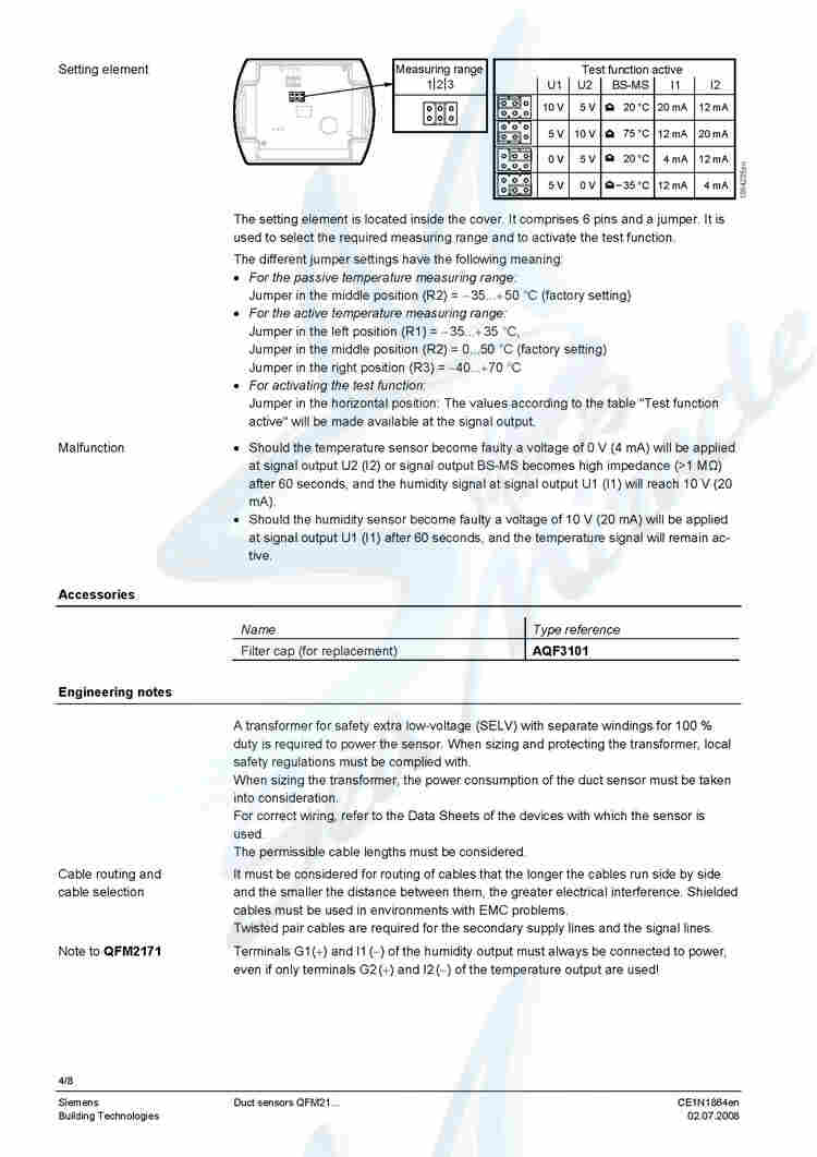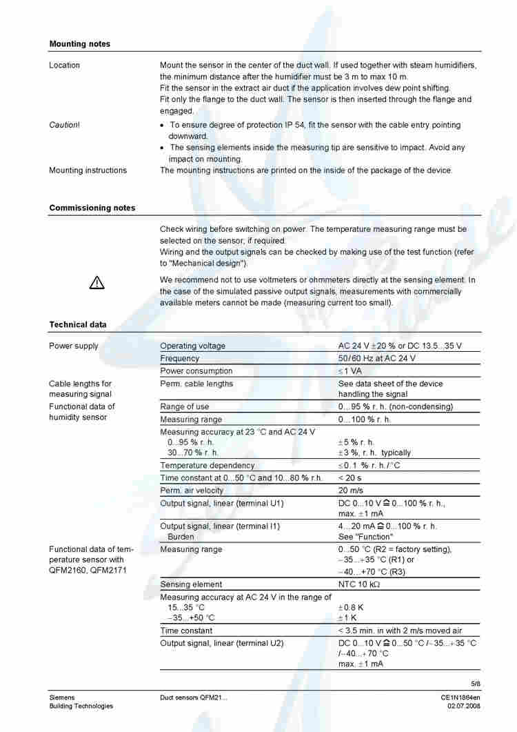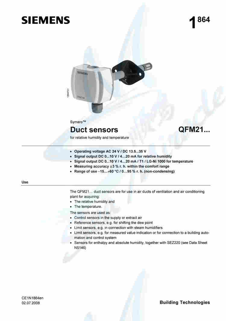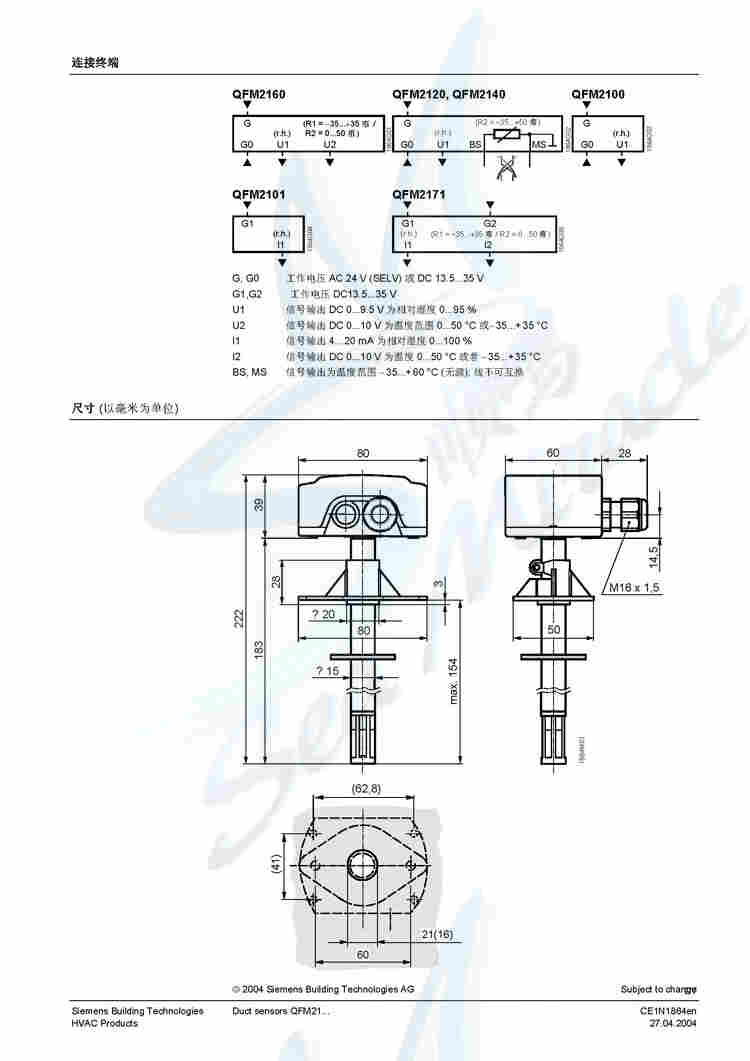 SIEMENS西门子 QFM2160 空气温湿度传感器0-10V风管空调