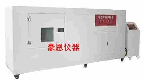 一、单体蓄电池试验: 要求: 1.在20℃±5℃通风环境条件下,蓄电池先以1I (A)电流放电至终止电压1.0V,搁置1h,然后以1I (A)电流恒流充电3h时转0.15I (A)电流充电2h,搁置1h。 2.用直径φ3mm~φ8mm的耐高温钢针、以10mm/s~40mm/s的速度,从垂直于蓄电池极板的方向贯穿(钢针停留在蓄电池中) 结果:应不起火、不爆炸。 二、蓄电池模块试验: 要求: 1.在20℃±5℃通风环境条件下,蓄电池先以1I (A)电流放电至终止电压(n X 1.0)V,搁置1h,然后以1I (A)电流恒流充电3h时转0.15I(A)电流充电2h,搁置1h 2.用直径φ3mm~φ8mm的耐高温钢针、以10mm/s~40mm/s的速度,从垂直。于蓄电池模块极板的方向贯穿至少三个蓄电池单体(钢针停留在蓄电池中)。 结果:应不起火、不爆炸。 |