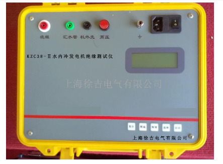 KZC38-Ⅱ水内冷发电机绝缘测试仪是上海徐吉电气有限公司生产销售KZC38-Ⅱ水内冷发电机绝缘测试仪,于水内冷发电机的测量试验,同时也可用于试验室或现场做绝缘测试试验。输出电流大于25mA。输出电压*大5000V。内含高精度微电流测量系统、数字升压系统。只需要用一条高压线和一条信号线连接试品即可测量。测量自动进行,结果由大屏幕液晶显示,并将结果进行存储。