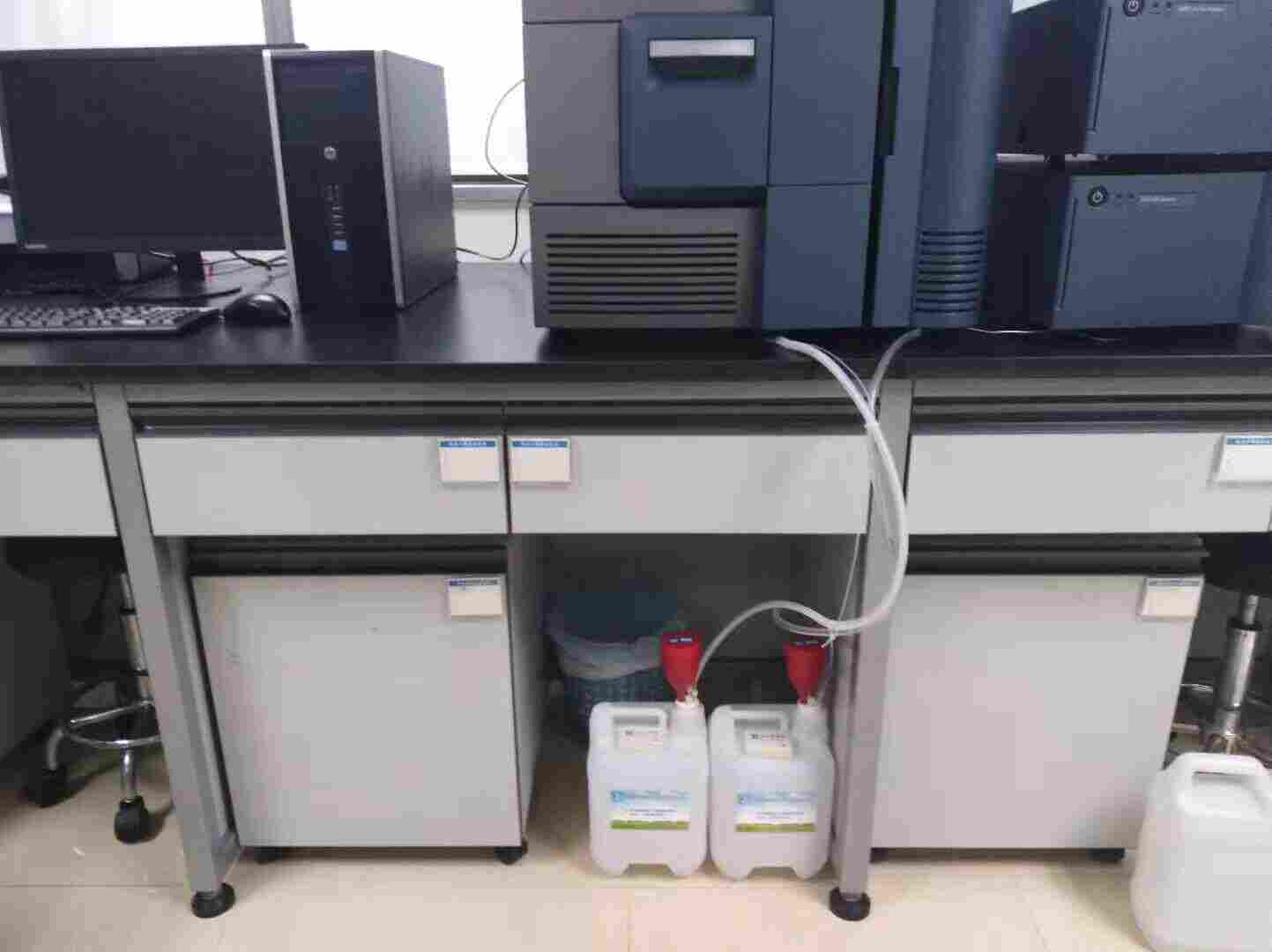通用的色谱分析实验室,在液相色谱、液质联用、ICP-MS等的使用中,需大量用到如丙酮,乙晴等有机溶剂,其废液的排放一般常规的是将使用废液直接接到瓶中,注意点的会用在瓶盖中钻孔,将废液管插入,对瓶中的溶剂没有很好的密封,常有溶剂挥发出来,影响实验室环境,也给实验人员的健康带来隐患。同时由于接收的瓶或桶补全透明,常会出现排满溢出等的情况,严重的影响实验室的环境。
