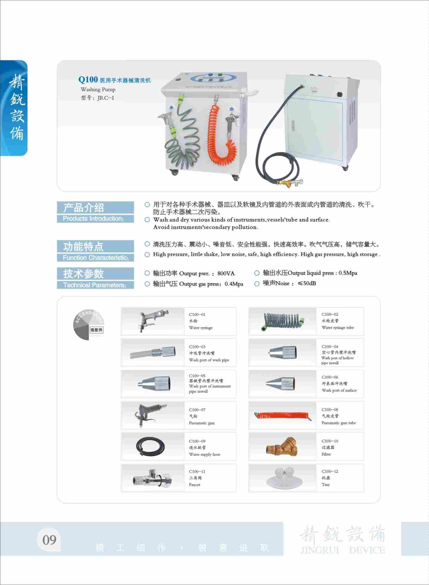 用于对各种手术器械、器皿以及软镜及内管道的外表面或内管道的清洗、吹干。
