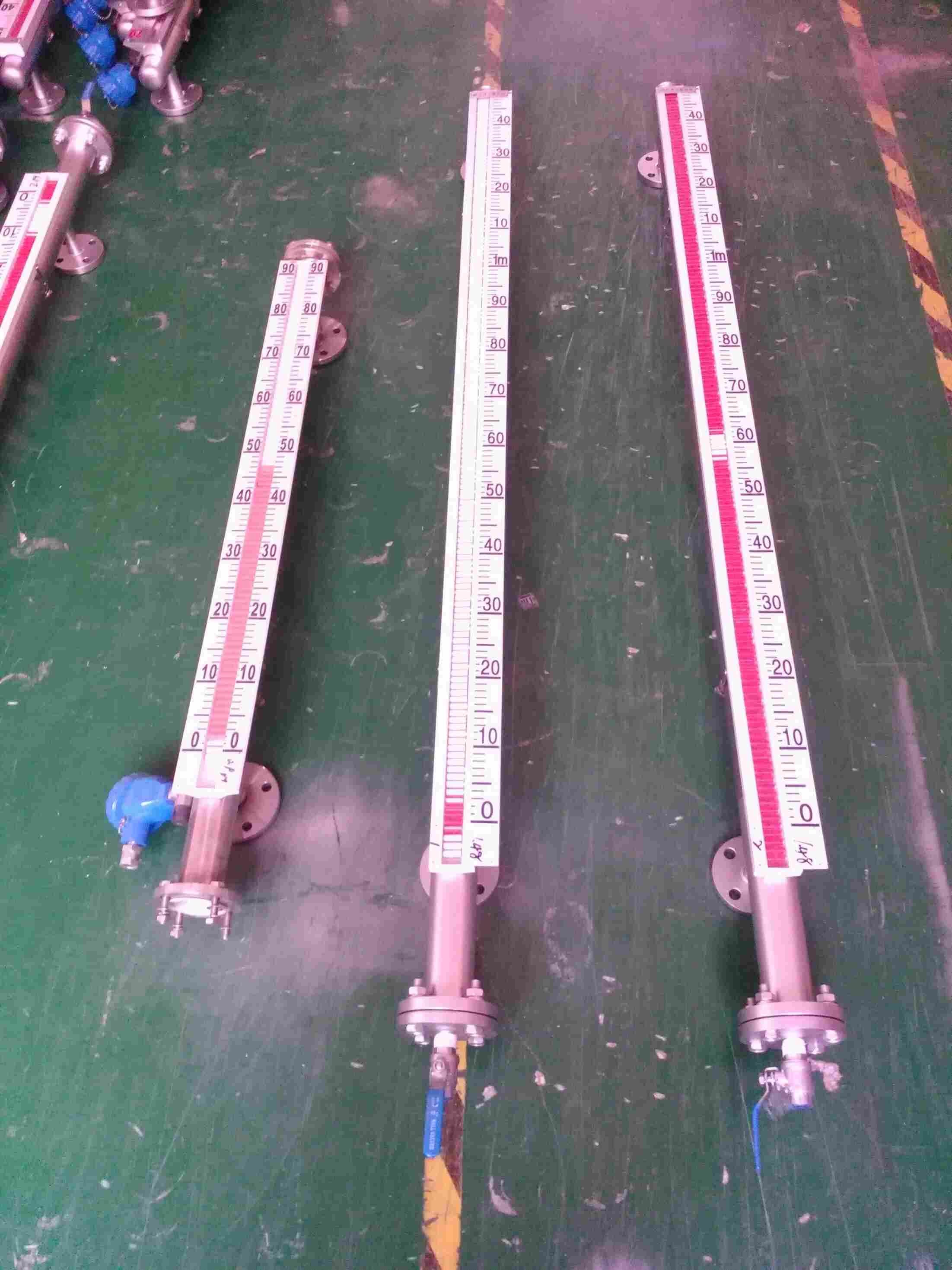 亚硝酸液位计指示器装置在桶槽外侧或上面,用以指示和节制桶槽内的液位,封锁方式可依据需求加装排污阀。接续法兰可承受定制液位高度的一种节制仪表,指示器由磁性色片构成,当本体管内的磁性浮球随液位上升时色片翻转,即可显示液位高度。也可在本体管上加装磁性开关或远传变送器,输出开关旌旗灯号或模仿量旌旗灯号。合适用于高温、高压、耐侵蚀等场所,可当场显示和长途节制。磁翻板液位计本体管采用无缝钢管,衔接管处采用拉孔焊接,内部无划痕。磁翻板液位计装置方法可选择侧装和顶装,磁翻板液位计本体下端密封。