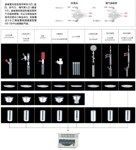 7、通过选择不同的试管规格,配置不同的反应容器尺寸和数量,可以进行合成量0.5~60ml,1~20支的合成试验;