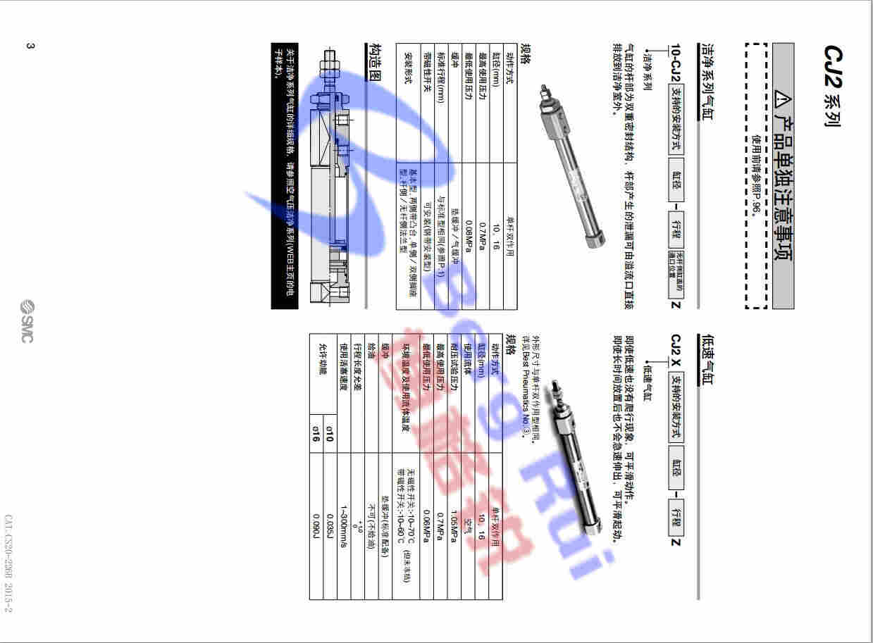 CJ2系类圆形笔杆气缸的特点:带缓冲可以1000mm/S高速运动。