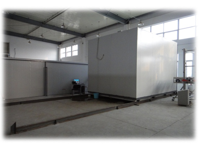 热计量箱提供一个可控的热环境(模拟建筑内部的空间),内置高吸收率的集热箱收集外来的辐射能。通过热交换装置和水循环系统,保持箱内的环境在测试所要求的状态;同时,水循环系统带出吸收的热量,用于计算得热量。计量箱正式测试前,需进行现场,确定热损与温差的关系。另外计量箱开有一个1500X1500大小的测试口,可放置被测试件。