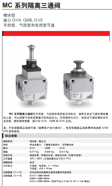 意大利CAMOZZI(MC238-V01)隔离三通阀