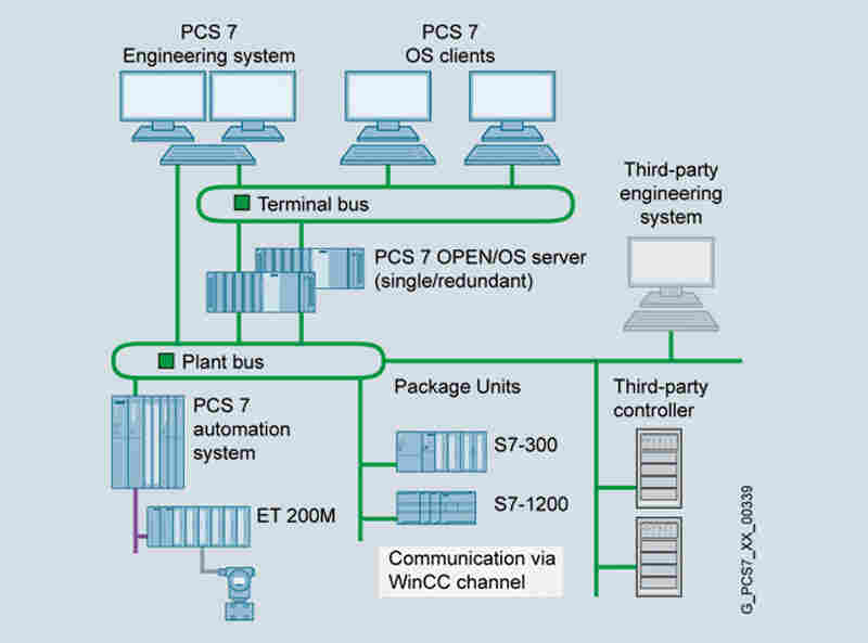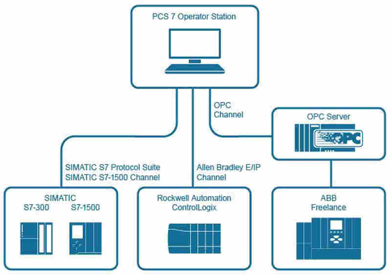 基于待集成控制器的工艺特性,可通过 WinCC 通信通道将其集成在 SIMATIC PCS 7 过程控制系统中。