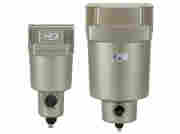 SMC油雾分离器AFM级是分离掉空气过滤器难以分离掉的0.3~5μm气状溶胶油粒子及大于0.3μm的锈末、碳粒。进气方式是内进外出。压缩空气从进口流入滤芯内侧,再流向外侧。进入纤维层的油粒子,依靠其运动惯性被拦截、并相互碰撞或粒子与多层纤维碰撞,被纤维吸附。更小的粒子因布朗运动被纤维吸收。且越往外,粒子逐渐增大而成为液态,凝聚在特殊的泡沫塑料层表面,在重力作用下流落至杯子底部再被排出。