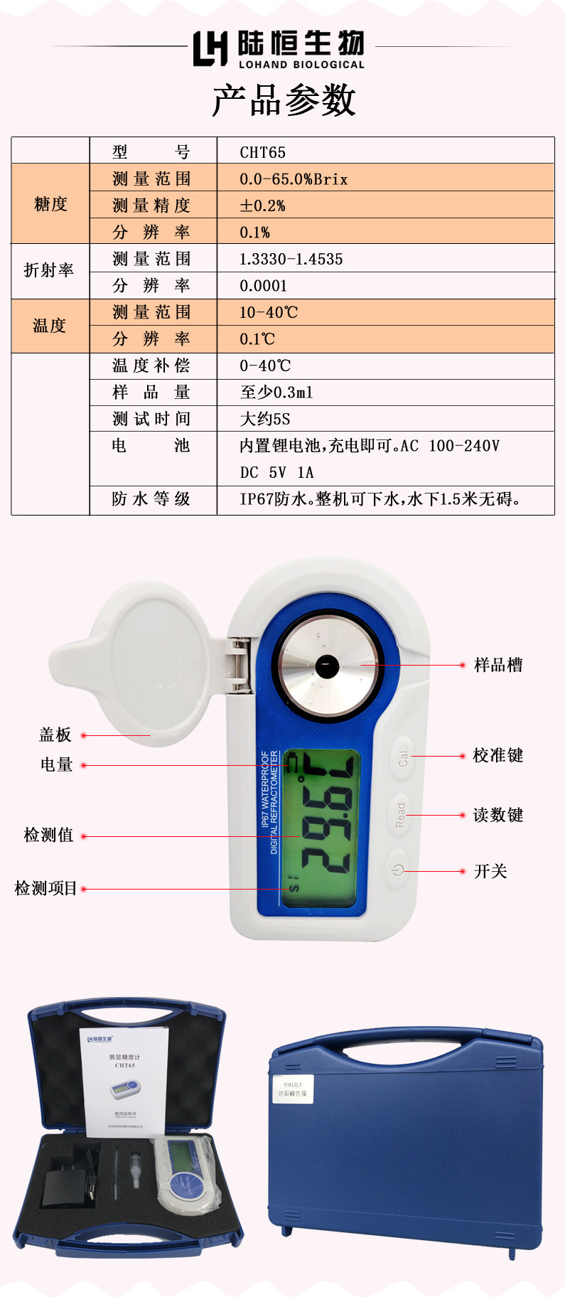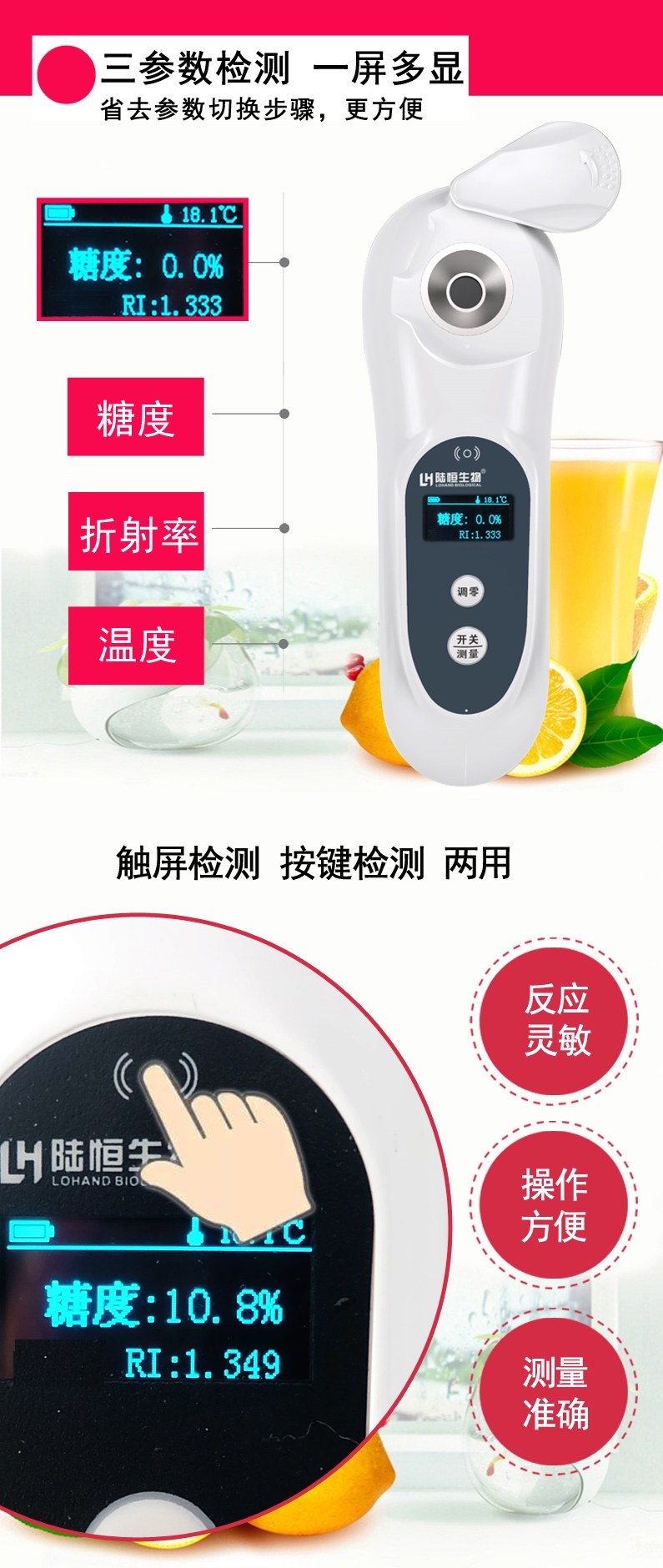 昆明诺金科技有限公司生产销售陆恒生物数显糖度计高精度水果测糖仪糖分检测仪甜度测量仪折光仪