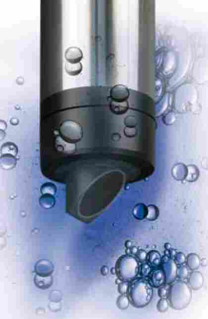 45度测试技术: 传感器顶端没有采用平面的构造,而是有个45度的坡度,这样可避免气泡累积,从而解决了代易受气泡干扰的问题。