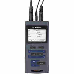 | * 可测量pH,ORP,ISE,电导率,溶解氧和温度 * 可连接各种模拟的标准PH复合电极或ORP电极,电导率电极,离子电极和溶解氧电极 * LCD背光显示,可同时显示2个测量参数 * 两个输入通道,可同时测量pH和电导率,或pH和溶解氧 * 自动读数功能 * 手动存储500组,自动存储5000组数据 * USB接口,可快速传输数据 * 自动关机功能,可在10min-24h之间设定 * 长电池寿命,4节5号电池可连续工作1000小时 * 防水等级IP67 | ![]() |