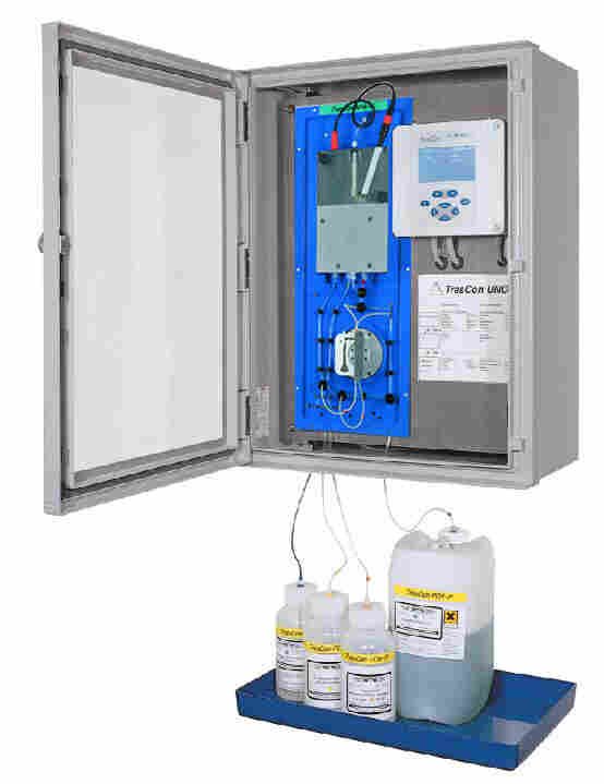 TresCon® Uno 由中央控制器、分析模块和试剂托盘组成,可以安装在墙上。