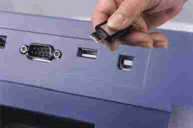 WTW的分光光度计配有3个输出界面:USB-A(连接U盘、打印机和条形码阅读器)、RS232以及连接电脑的USB-B接口。可以用U盘来快速实现以下功能: