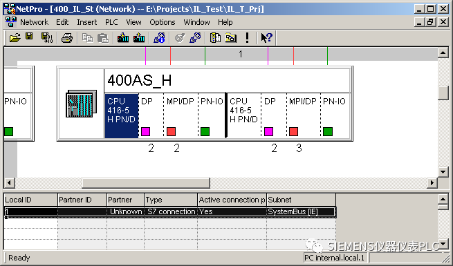 从S7-400H CPU的两个CPU分别创建一个到“Unspecified”的S7连接,可以看到,这两个连接的ID号是不同的。