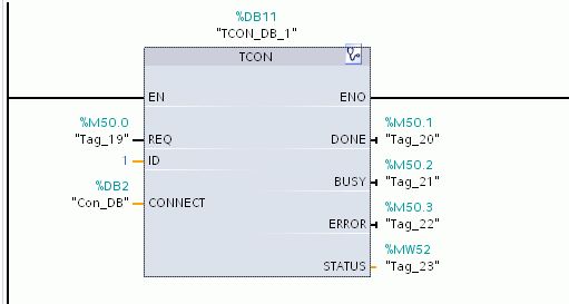 ① 在*个 CPU 中调用发送通信指令,进入 “Project tree” > “ PLC_2” > “Program blocks” > “OB1” 主程序中,从右侧窗口 “Instructions” > “Communications” > “OPEN User Communications”下调用 “TCON” 指令,创建连接,如图15所示。