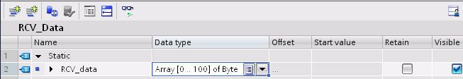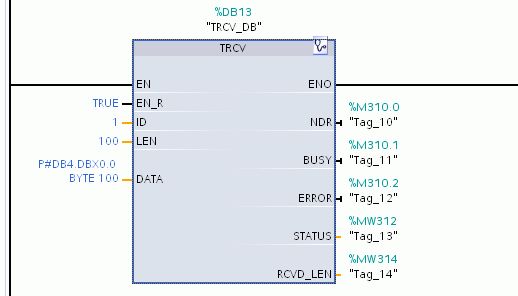 DATA | := P#DB4.DBX0.0 BYTE 100 | // 接收数据区的地址 |