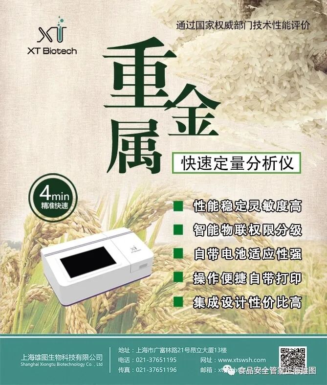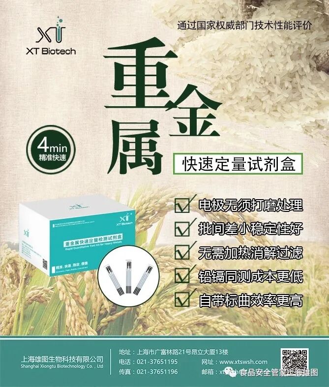 采用严格的监控手段,由于国标的方法仪器大价格贵、检测耗时长、人员操作水平要求高等局限性,很多大米加工企业不具备*人员去操作,导致大家不知道如何去做品控。市面有用免疫学快检方法的产品,但重金属本身的特殊性,检测结果差强人意。上海雄图开发的溶出伏安法重金属快速定量检测系统,灵敏度高、稳定性好、样本前处理无需加热消解过滤、无需用户自配试剂和自建标曲,即到即用,随到随检,检测结果可与国标方法媲美,有相关技术性能鉴定评价,可以有效帮助米厂、面粉厂等单位,提高重金属品控水平,为人的饮食健康保驾护航!