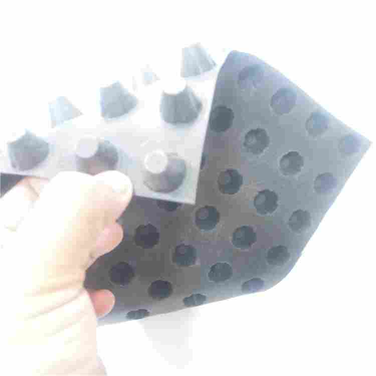 渗水片材与HDPE结合应用时,同时能起到很好地保护HDPE膜不被穿刺的作用覆布排水板的特点由于覆布排水板是将无纺布基布经过热复合牢固的粘接在排水板上,因此无纺布既保护了排水板不外露以避免排水板遭到阳光暴晒而缩短使用寿命,又稳定了排水板的稳定导流排水特性,这是为什么呢我们马上来了解看看吧依照规划图纸要求设置防水层,再用水泥砂浆起坡,使外表无显着凹凸处,蓄排水板有序排放,铺设范围内无须别的设置排水盲沟