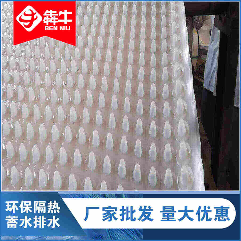 ◆ 铺设时一定要把平面打扫干净,防止有小石子把排水板顶破影响排水效果准备工作完成后铺设排水板,一般的排水板的尺寸是米×0米的,铺设的顺序是自上而下先铺坡度高的地方,深圳市犇牛环保科技有限公司的排水板搭接的地方要高处的压住地处的排水板,这样雨水流的时候会迅速流出。