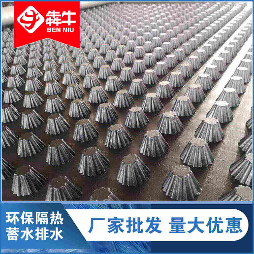 蓄排水板在铺设的时候凸起是朝下的,只有凸起朝下才会体现出蓄排水板上蓄水孔的作用,蓄排水板顾名思义一定要有蓄水和排水作用,如果凸起朝上就完全失去了蓄水的作用,从这一点可以很好的解释,其次蓄排水板哪面向上还可以从蓄排水板铺设中看到,蓄排水板之间利用搭接扣连接。一蓄排水板的铺设规范.防水层及其保护层施工完成后,开始铺装排水板。要求基层排水坡度满足‰~‰;.将排水板杯状口朝上铺装,齿孔相扣,深圳犇牛环保生产的蓄排水板规格皆可定制,施工简单;.排水板上面覆盖土工布,土工布相互搭接0~0cm,防止泥水穿过土工布,淤堵蓄排水系统,造成排水不畅,蓄水量减少等;.在土工布上面铺0~0mm中粗砂,形成渗透过滤层,可阻止种植土流失;.覆盖适当厚度种植土,使用蓄排水板的车库顶板或屋顶花园回填土一般不过0公分;.要做好排水板成品保护。