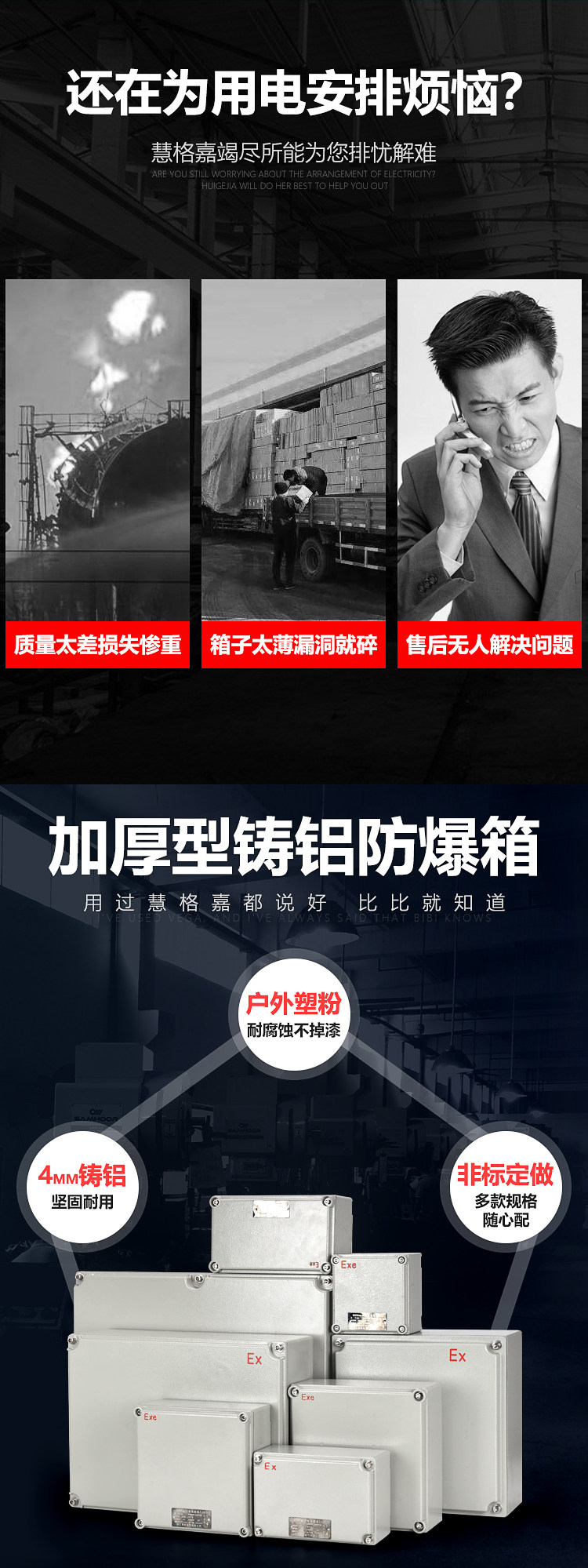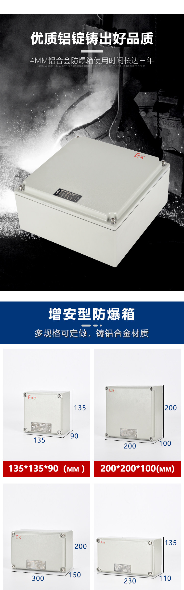 BJX防爆配电箱接线箱300*400控制箱动力箱配电柜监控仪表箱增安型 证书齐全 5MM铝合金加厚