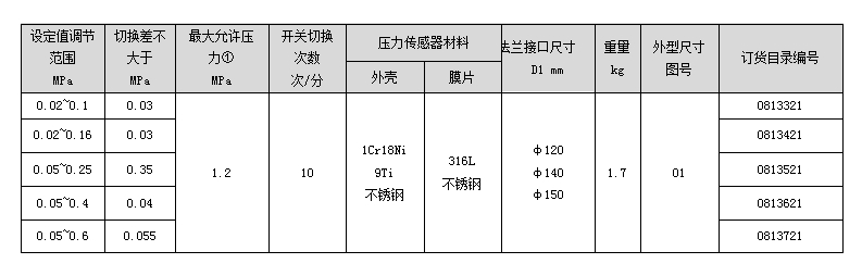 KI-518/7D压力控制器采用法兰膜片式传感器,可用于腐蚀性或粘性流体介质以及含有粉尘物或易结晶物的介质,控制器的设定值可调,调节范围0.02~0.6MPa。