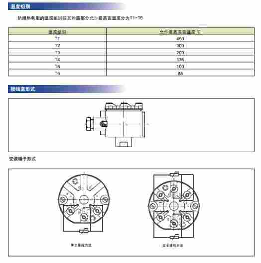 隔爆热电阻是利用物间隙隔爆原理,设计具有足够强度 的接线盒等部件,将所有会产生火花、电弧和危险温度的零 部件都密封在接线盒腔内,当腔内发生爆炸时,能通过接合面 间隙熄火和冷却,使爆炸后的火焰和温度传不到腔外,从而进 行隔爆。