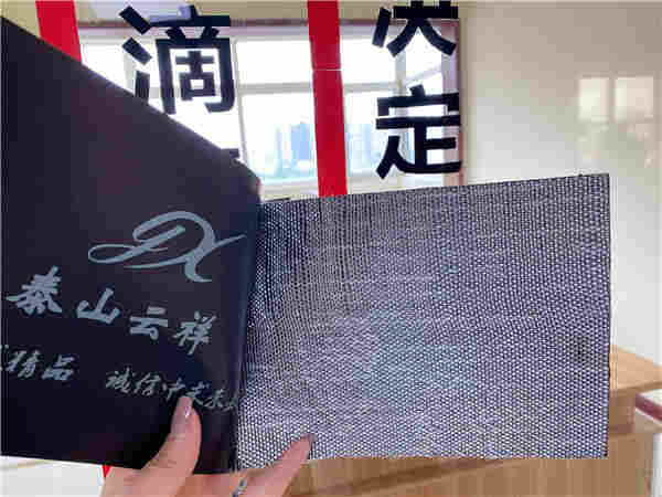 防裂贴上涂层在铺设热沥青混合料时,高强度织物不会发生高温变形,高聚物热熔后从织物的缝隙中渗出,与其粘结非常好。下涂层有足够量的高聚物在熔化后填充基面的坑洼,增强了与基面的粘结力,下涂层和胎基的稳定性确保形成一层厚度相对均匀的复合夹层,起到抗裂防水的要求。