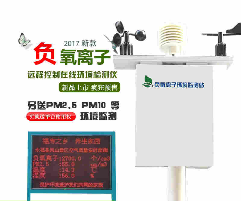 空气中的正离子和负离子、温度、湿度 (可选配PM2.5、PM10、风速、风向、等) |