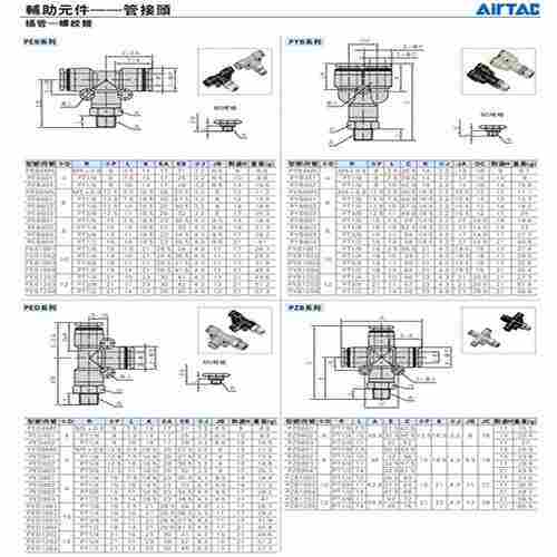 方便您整體配管需求。具有多種型號規格,廣泛應用于各類氣動系統。PHF10-04串联肘节接头黑色。。。PY8Y型三通接头黑色。。。PCF8-03内螺纹直通接头黑色。。。PEB6-02T形正螺纹三通接头灰色。。。PHW10-03F型螺纹可旋三通接头灰色。。。