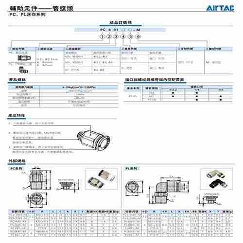 亚德客气动接头产品参数: