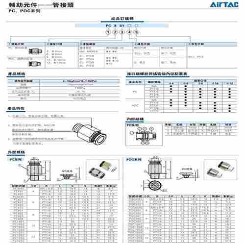 亚德客型主要气管接头有:APC螺纹直通,APPC铜塑接头,APCE内螺纹直通,APMF直通内牙穿板,APM隔板直通,APU直通,APCS直通锁母全塑接头,APG减径直通,APGJ减径直通插头,APV L型二通,APLM直角穿板,APLL L型加长螺纹二通,APLF L型内螺纹二通,APH外六角肘节接头,APL L型螺纹二通,APLS直角螺纹全塑接头,APB T型螺纹三通,APD T型分支螺纹三通,APEG T型减径三通,APEW T型减径三通,APE T型三通,APY Y型三通, APX Y型螺纹三通,APHF串联肘节接头,APW Y型减径三通,APHW F型螺纹可旋三通,APHZ十字减径四通,APKG减径五通,APKD 减径螺纹五通,APZR十字螺纹四通,APK五通,APZA十字四通,APKS可旋变五通,AFD可旋变六通,APKB螺纹五通。