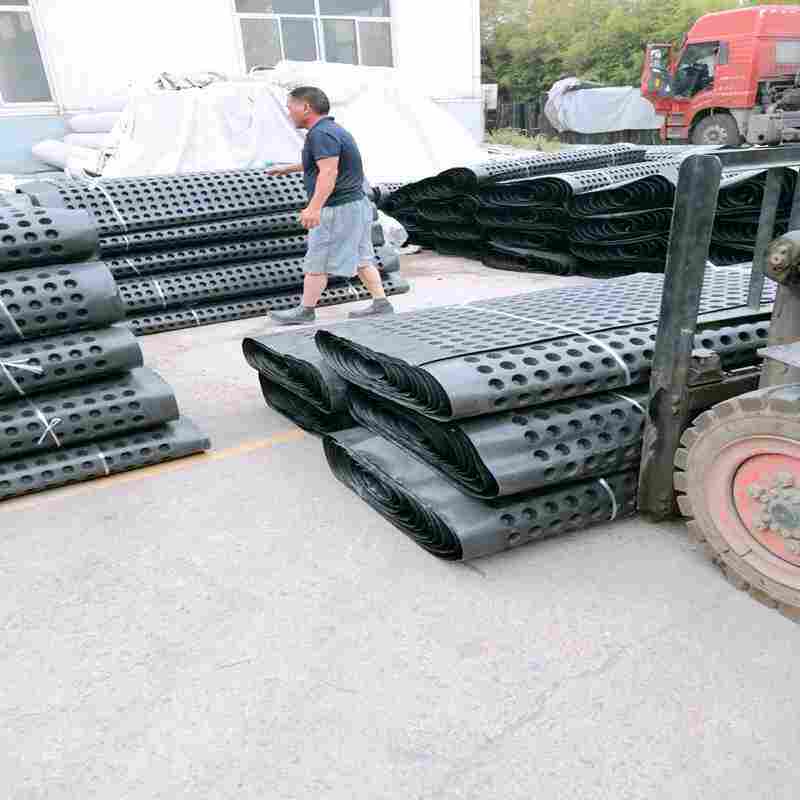 而且塑料排水板生产与使用过程中,都不应产生对人体生物与环境造成有害的影响。顶楼种菜传统的排水方式是采用鹅卵石过滤层,但这种方式会大大增加了楼板的荷载,相比较之下,排水板重量轻,韧性好,甚至还能减少泥土对于楼板的冲击。另外排水板上面的凹凸结构设计也能加速积水的流动,排水效果好。其实并不是所有顶楼都需要铺排水板,但只要种花种菜就都需要,另外在铺设时要注意这点①排水板的放平,不得倾斜或者是交叉摆放,另外铺设不能过层,且上面不能放置重物;②排水板*要按照顶楼倾斜的角度进行铺设,这样才能更好地将积水排到正确的位置;③*在干燥和通风的环境下铺设排水板,避免暴晒。一般排水口位置不同,排水板的位置也不同,如果排水口在侧面,那排水板要设计在它的下方。要是排水口在地面,首先要在底部预留好下水口,然后将排水板设计在排水口正上方,用鹅卵石固定一下就可以了。除了避免积水,浇水时同样也能观察排水板的情况,水溢出来就说明可停止浇水了,非常方便。现在很多小区为了楼顶隔热,会在楼顶铺草坪,施工过程中同样也少不了排水板,否则一到下雨天楼顶就被淹,不仅会增加楼板荷载有安全隐患,而且防水不过关,渗漏到顶楼业主家也麻烦。