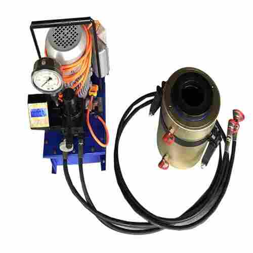 使用前先装上压杆,旋紧手轮,旋开排气阀,然后揿动压杆,使液压油通过高压胶管进入空心油缸内。使油缸上升40mm左右,然后旋松手轮,使油缸复位,反复数次,使缸内空气排完(排完油缸中的空气,活塞下降速度比较平稳)。