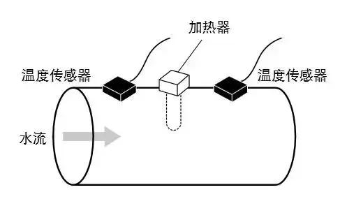 ■功耗测量法…在流体中安装一个加热器,在上游与下游 2 个点测量流体温度,通过对加热器进行控制,使 2 点之间 的温差保持恒定。