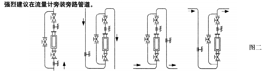 3、流量计的上游(进口端)应有5~ 10倍公称通径的直管段,按图六所示的方式安装流量计。
