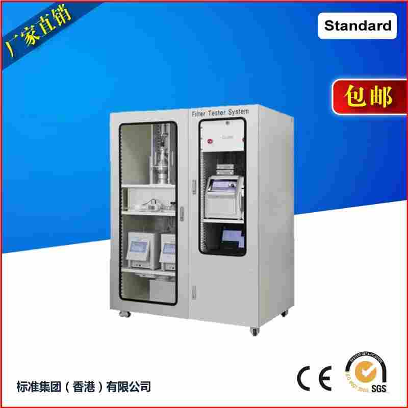 在体积为500L自净检测舱内安放国标头模,将待检口罩佩戴在头模上,通过发生中值直径为0.6μm,发生浓度为25mg/m3的盐性气溶胶和中值直径为0.3μm,发生浓度为25mg/m3的油性气溶胶输入自净检测舱内,头模做正弦曲线模拟呼吸,利用上下游光度计采样检测口罩前和口罩后盐性气溶胶和油性气溶胶的浓度,计算口罩颗粒物过滤效率。可将待检口罩佩戴在国标头模上,自动检测呼吸阻力。适用标准: