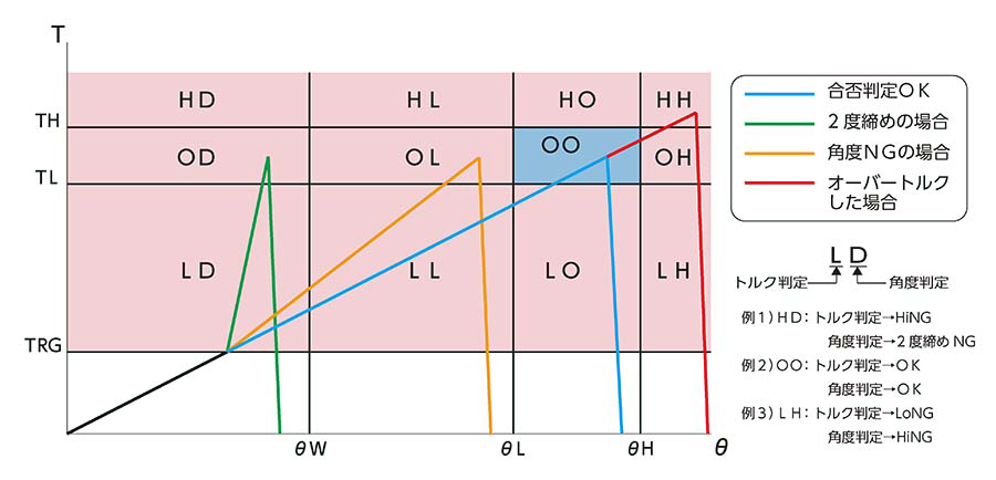 TRG:触发转矩,TL:下限转矩,TH:上限转矩,ΘW:2度紧固判定角度,ΘL:下限角度,ΘH:上限角度