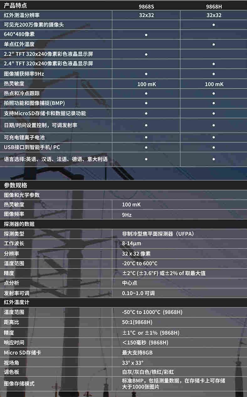 DT-9868S是一款简易型红外热成像仪,带有32*32个像素为2.2”彩色TFT液晶显示,简单、易用,同时不降低测温的精度,是需要从点测温过渡到热成像测温用户的重要选择和尝试。