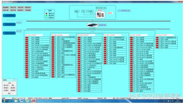 通讯示意图为拓扑图,显示系统与仪表的通讯是否正常。通过界面模块颜色的变化来反映整个系统各个监控点位的运行状态。界面如图2所示。