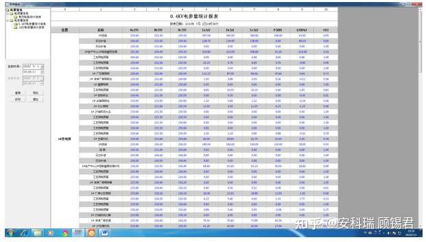参数报表反映了本项目监测回路的在过去某时间点的运行数据,通过当前或者过去某时间点的实时参量数据反映回路状态。主要的数据包括:三相电压,三相电流,电能,有功功率,无功功率,功率补偿因数,频率。界面如图4所示