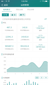 2.针对智慧用电部分,系统提供能耗分析功能,按回路可查询日、月、年的能耗报表和曲线。