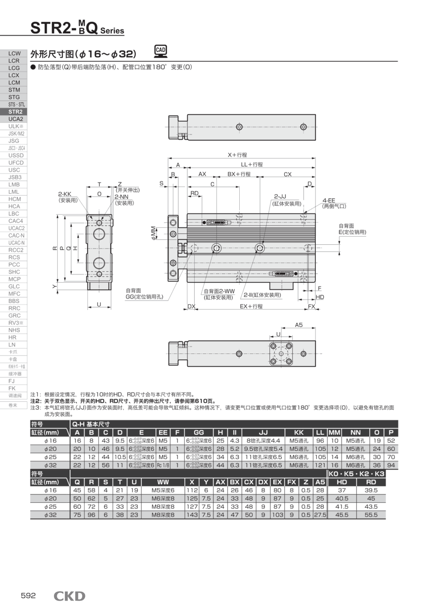 STR2系列级双杆气缸(STR2-BQ~) STR2-BQ-20-80-R-K3H-D