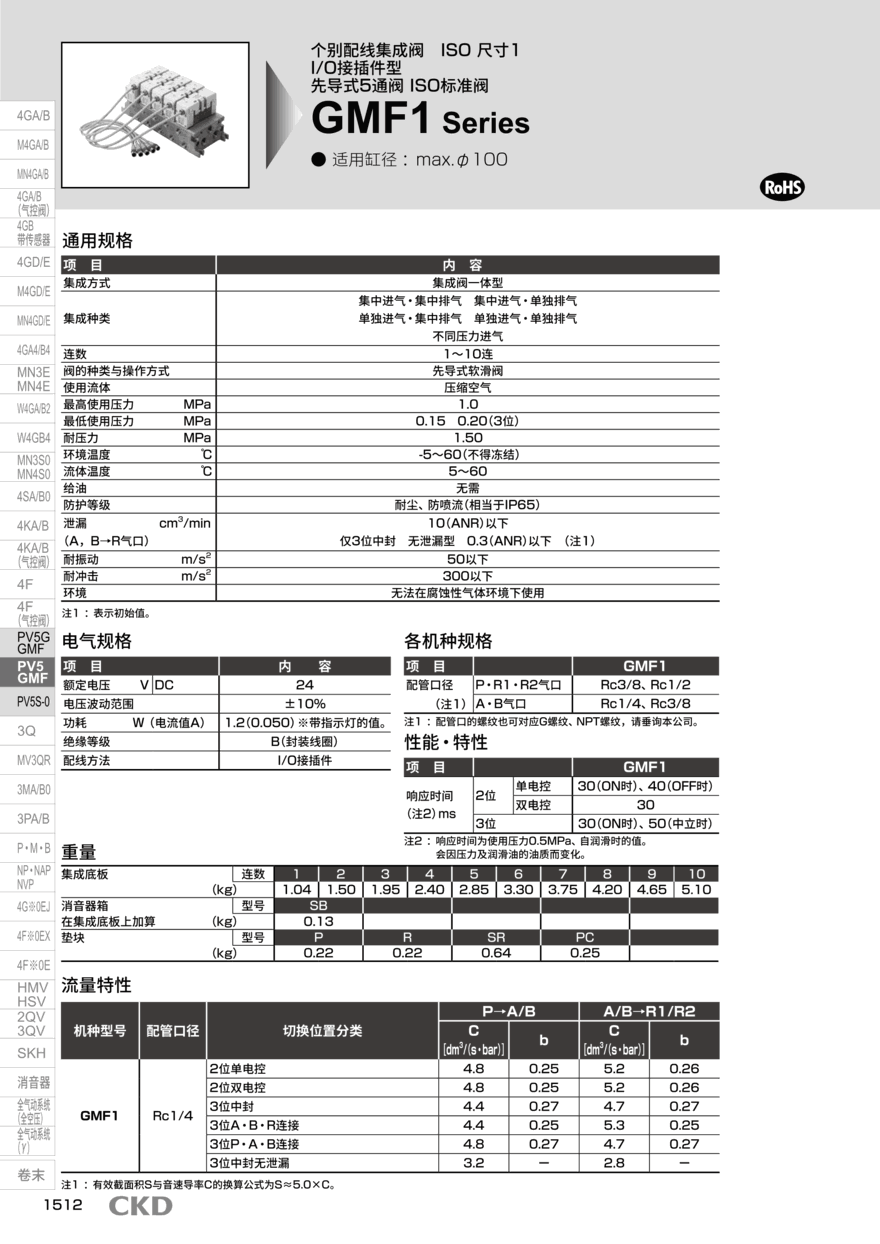 CKD五通阀PV5-8R-FHG-D-A04-TC资料PDF及其特点: